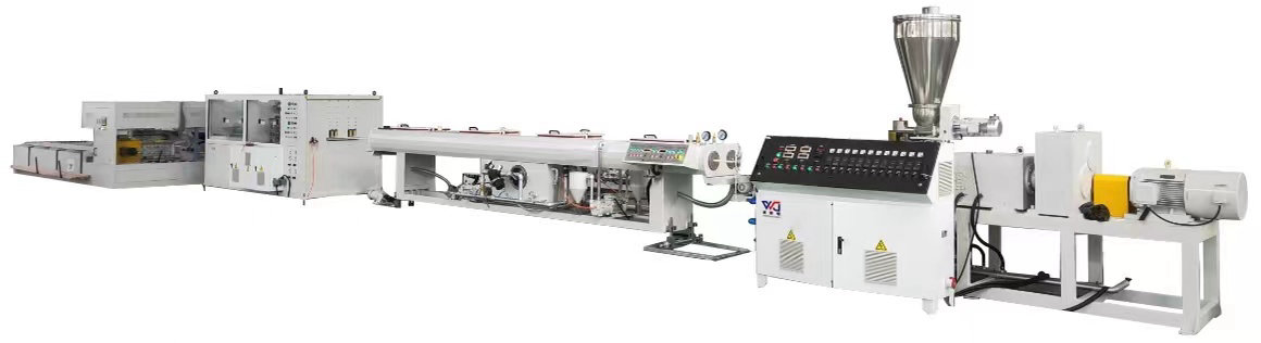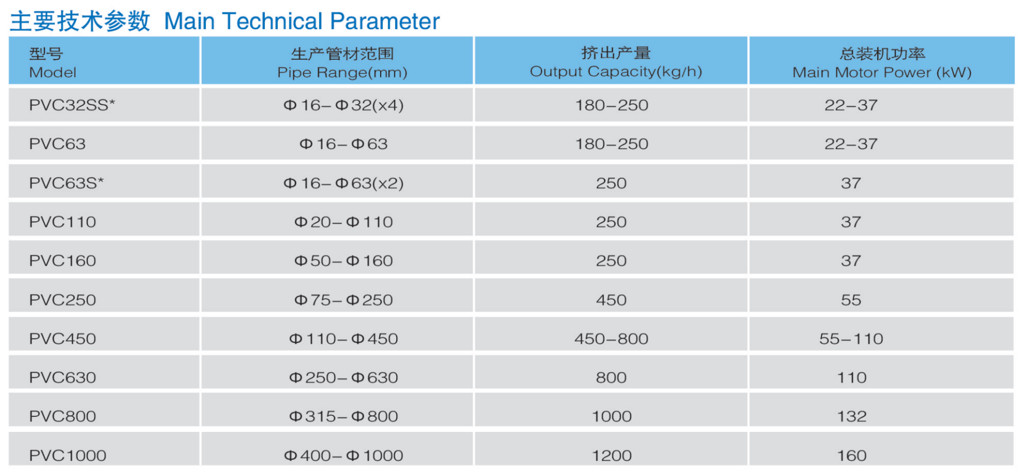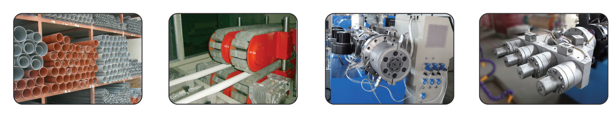 該管道主要用于生產(chǎn)農(nóng)業(yè)給排水、建筑給排水、市政給排水、電力電纜保護(hù)等方面各種規(guī)格的UPVC管材。該設(shè)備由錐形雙螺桿擠出機(jī),模具,真空定型臺(tái),牽引機(jī),切割機(jī),擴(kuò)口機(jī),翻料架等組成。擠出機(jī)及牽引機(jī)采用進(jìn)口交流變頻調(diào)速裝置,真空泵及牽引機(jī)電機(jī)均采用優(yōu)質(zhì)品牌。牽引有二爪,三爪,四爪,六爪,八爪、十爪、十二爪等牽引方式。切割可選用鋸片或行星切割形式,另可帶計(jì)長(zhǎng)及增厚裝置。機(jī)組性能可靠,生產(chǎn)效率高。 →有錐雙擠出機(jī)和平雙擠出機(jī)供選擇。 →改變部分單元可以生產(chǎn)M-PVC、C-PVC、內(nèi)壁螺旋管、內(nèi)壁空心管和芯層發(fā)泡管等管材。 →鋸片式切割機(jī)和行星式切割機(jī)供選擇。 →小口徑有一出二和一出四共選擇。 一出一PVC/UPVC/CPVC ID16mm-ID630mm系列PVC管材擠出生產(chǎn)線(xiàn)主要用于生產(chǎn)農(nóng)用給排水,建筑給排水,線(xiàn)纜鋪設(shè)等方面。 一出二PVC/UPVC/CPVC 主機(jī)為SJZ51/105或SJZ65/132錐形雙螺桿擠出機(jī),配以雙管單控不銹鋼噴了定型機(jī),生產(chǎn)時(shí)避免了一管調(diào)整而影響另外一管的浪費(fèi)現(xiàn)象。自動(dòng)單控雙牽引機(jī)和切割機(jī)同前面雙定型技術(shù)融為一體,使操作更靈活。雙管擠出管徑從16-63,能充分利用擠塑機(jī)的擠出能力,即使生產(chǎn)小管徑的管材也可以達(dá)到極高的產(chǎn)量。 一出四PVC/UPVC/CPVC 用途及特點(diǎn):一模四出PVC線(xiàn)管、供水管產(chǎn)線(xiàn)可降低設(shè)備投入成本,廠房投入成本和生產(chǎn)投入成本,大大提高產(chǎn)量。以雙錐65主機(jī),一出四模具,一出四冷卻定型臺(tái),一出四牽引機(jī),一出四切割機(jī),一出四翻料架。